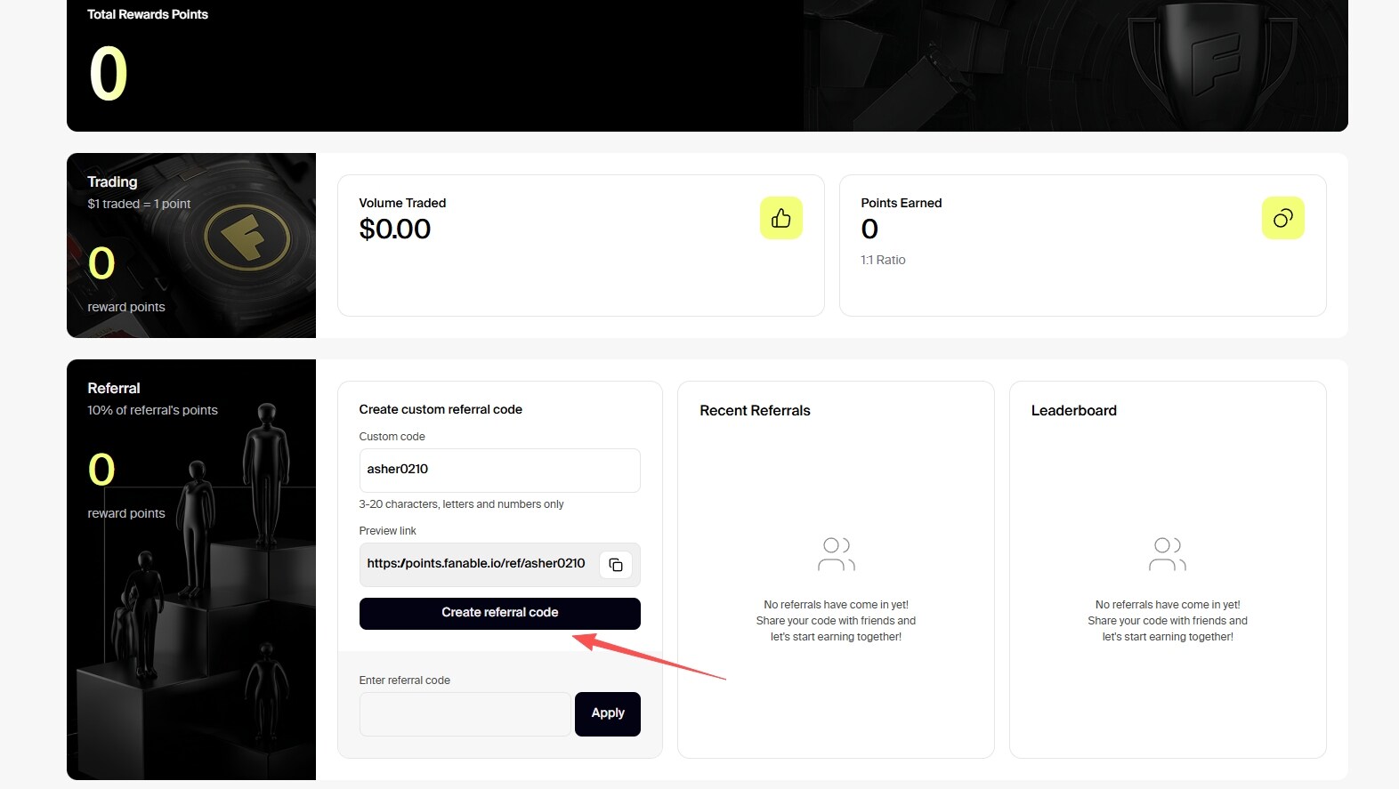 STEP 2. Click "Rewards" and select "Points" to get your personal invitation link and view the number of RH points in your account.