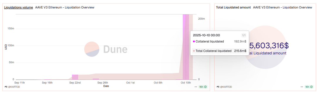 We also tracked Aave's liquidations using a third-party data analysis platform. The data shows that while Aave's overall liquidation volume reached $192 million during the market crash (October 10-11, 2025), liquidations related to USDe and sUSDe were minimal and almost negligible.