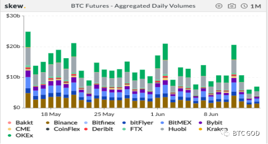 Theo dữ liệu của Skew, khối lượng giao dịch của sàn giao dịch hợp đồng tương lai Bitcoin đã vượt quá 20 tỷ đô la Mỹ vào thứ Năm tuần trước, đạt mức tối đa trong ngày gần đây. Vào ngày hôm đó, khối lượng giao dịch trên OKEx, Huobi và Binance là 4,8 tỷ đô la Mỹ, 4,3 tỷ đô la Mỹ và 4 tỷ đô la Mỹ.