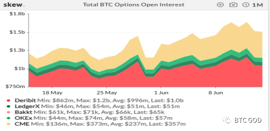 Tác giả tin rằng sự gia tăng lớn về các vị thế quyền chọn Bitcoin có thể chủ yếu là do sự gia tăng các vị thế trên Deribit và CME. Vị trí tùy chọn bitcoin của Deribit đã tăng 150% so với đầu tháng 4; vị trí mở tùy chọn bitcoin của CME cũng đạt mức cao kỷ lục vào ngày 10 tháng 6, đạt 373 triệu đô la, trong khi vào đầu tháng 5, giá trị chỉ là 1300 triệu, điều đó có nghĩa là các tùy chọn bitcoin của CME vị trí đã tăng 26 lần trong vòng chưa đầy một tháng rưỡi.