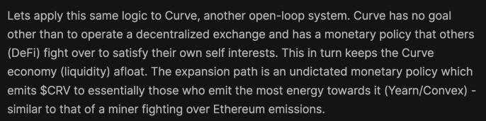 Sami의 말에 따르면 프로토콜은 가치 확보보다는 가치 창출에 너무 집중되어 있습니다. 이에 대한 예는 프로토콜이 확장 수단 없이 TVL을 축적하려고 시도하는 동안 Curve Finance와 가치를 포착하여 프로토콜 및 토큰 보유자에게 다시 가져오는 능력입니다. Curve는 Convex와 같은 프로토콜의 발판(또는 받침대) 역할을 할 수 있으며, 이를 통해 여전히 Curve로 가져오면서 가치를 축적할 수 있는 기회를 제공합니다. Sami는 이것을 개방 루프 시스템과 폐쇄 루프 시스템의 차이점으로 설명합니다. 열리지 않는 사이클에 대해 낙관적이라고 할 수 있습니다.