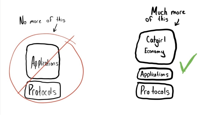 놀랍지 않나요? 응용 프로그램이 자체 프로토콜 계층으로 발전할 수 있을 뿐만 아니라 다른 프로토콜도 그 위에서 발전할 수 있으며 결국 자체적으로 개방 루프를 생성할 수 있는 경우 프로세스를 복제할 수 있습니다. 다음은 내가 할 수 있는 것보다 상황을 더 잘 그리고 더 일관되게 설명하는 Sami의 기사에서 발췌한 구절입니다.