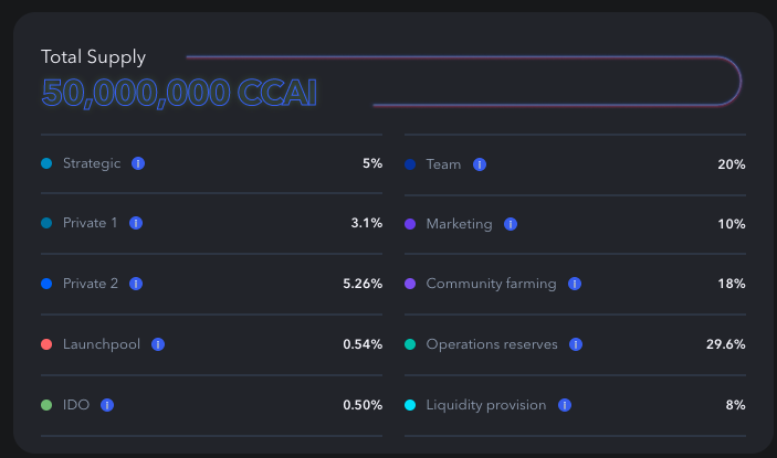 Hisham Khan: Of course, let me share with you! First of all, all the details about our token distribution rules can be found on our official website:https://ccai.cryptocurrencies.ai/