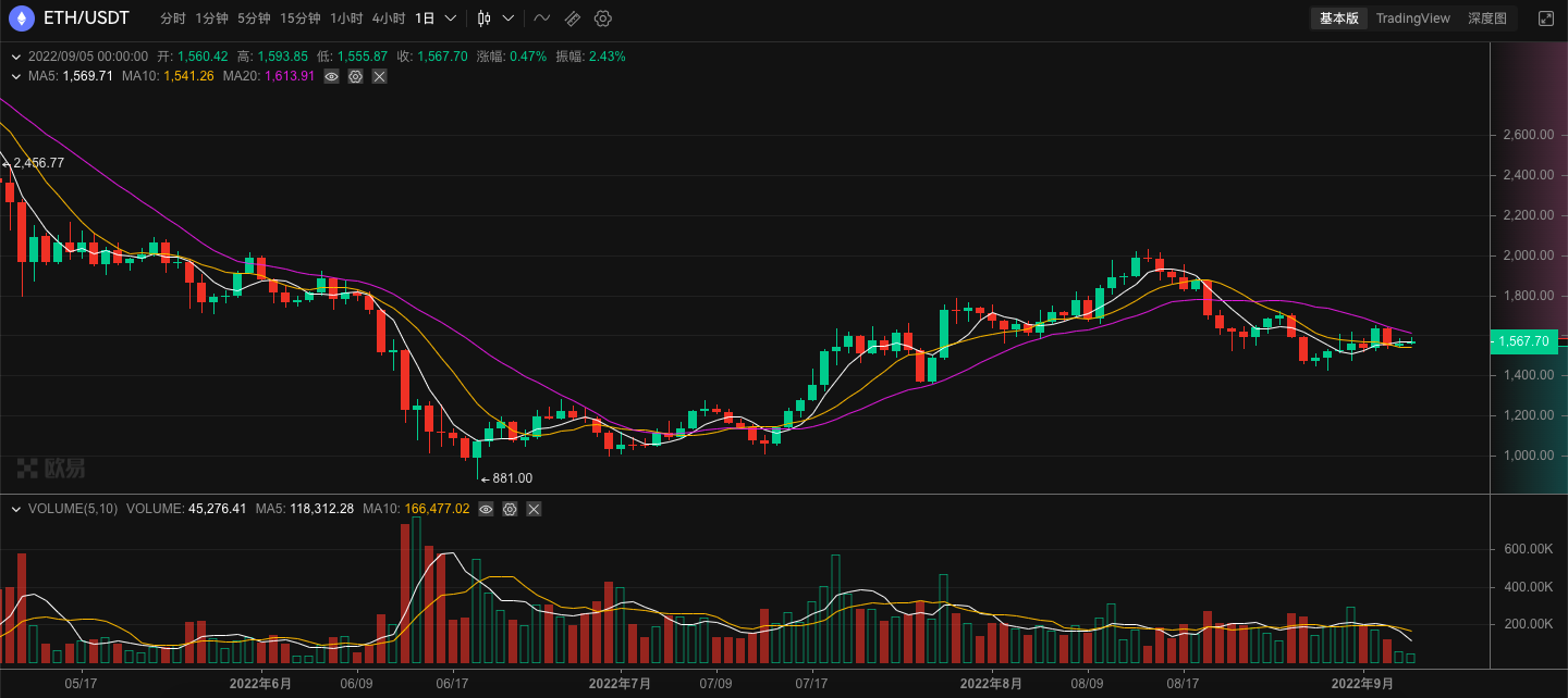 According to OKX market data, the price of ETH once fell to $1,420 last week, and closed at $1,560 during the week, up 5% month-on-month.