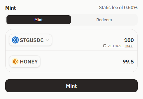公式 HONEY プラットフォームでは、STGUSDC を使用して HONEY を鋳造することができ、逆に引き換えることもできます。