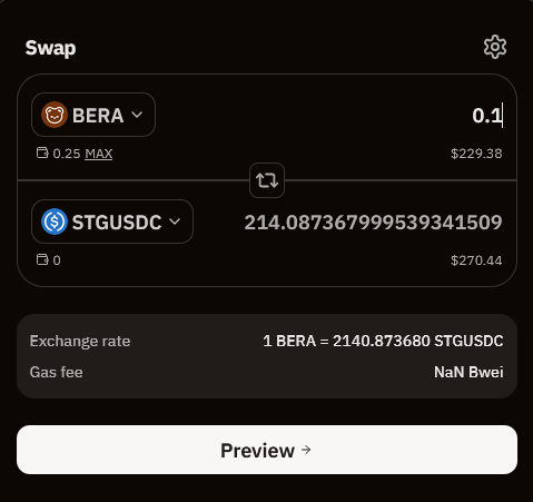 次に、公式の分散型取引所についてBEXBERA を STGUSDC に変換します。