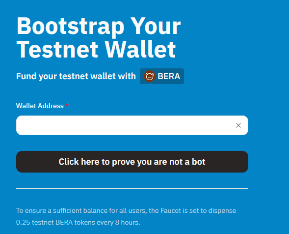 ユーザーが最初に必要とするのは公式蛇口テストネットワークガストークン BERA を受け取るには、ウォレットアドレスを入力して受け取り、8 時間ごとに 0.25 BERA を受け取ることができます。