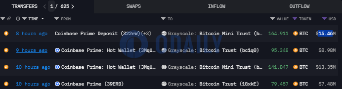 Odaily News According to Arkham monitoring data, a total of 481,563 BTC flowed into Grayscale again this morning, with a value of approximately US$45.27 million, of which 306,758 BTC (US$28.81 million) flowed from Coinbase to the Grayscale Spot Bitcoin Mini Trust Fund, and 174,805 BTC (US$16.46 million) flowed into the Grayscale Bitcoin ETF. According to official data, as of November 20, the Bitcoin holdings of the Grayscale Bitcoin ETF GBTC reached 218,417.3075 BTC, with a holding value of approximately US$20.6 billion; the Grayscale Bitcoin Mini Trust Fund held 36,538.7978 BTC, with a holding value of approximately US$3.45 billion.