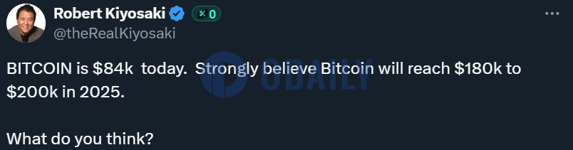 Odaily News Robert Kiyosaki, author of "Rich Dad Poor Dad", posted on the X platform that he firmly believes that the price of Bitcoin will reach $180,000 to $200,000 in 2025.