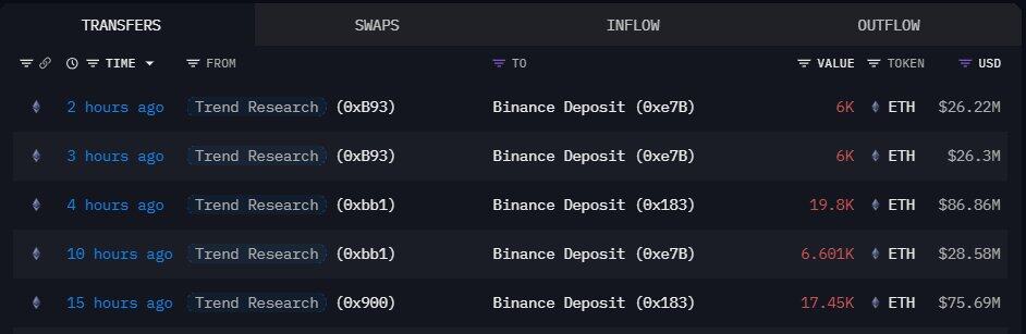 Trend Research has transferred over 55,000 ETH to Binance in the past 15 hours.