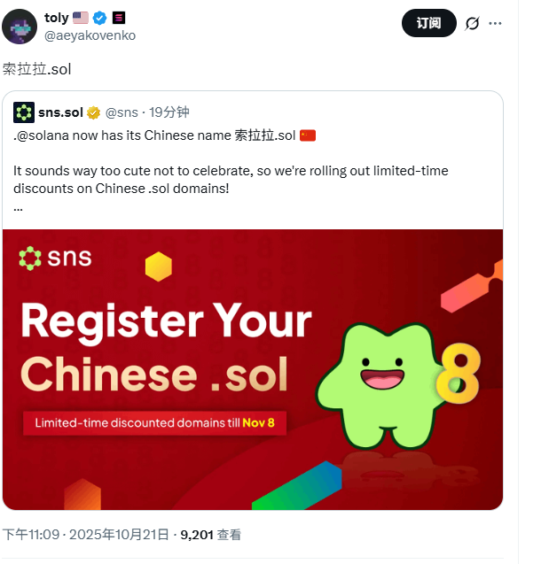 Odaily Planet Daily News: SOL co-founder Toly retweeted SNS.sol's tweet and commented: "Solala.sol"