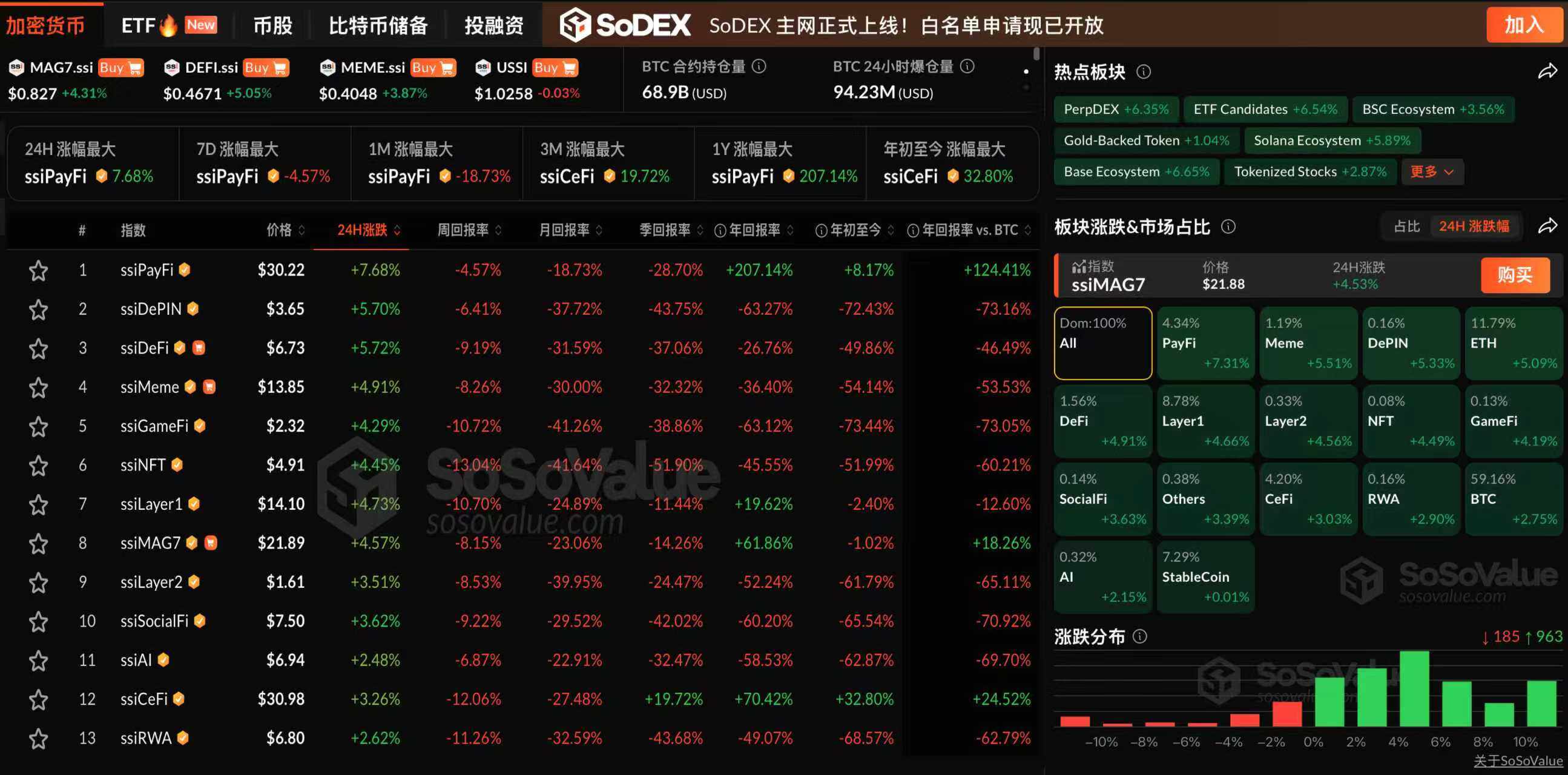 The crypto sector index, which reflects the historical performance of the sector, shows that the ssiPayFi, ssiDePIN, and ssiDeFi indices rose by 7.68%, 5.70%, and 5.72%, respectively.