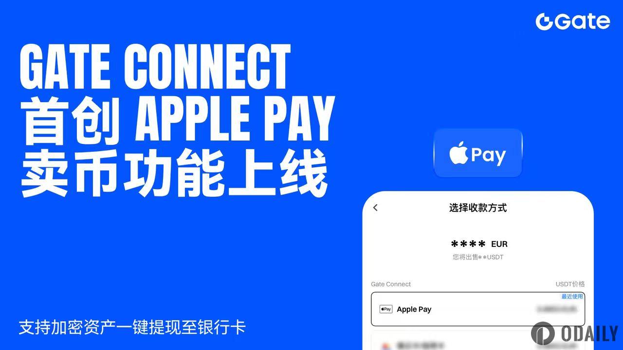 Odaily Planet Daily reports that cryptocurrency platform Gate.com has announced the official launch of Apple Pay for selling cryptocurrency through its self-operated deposit and withdrawal channel, Gate Connect.