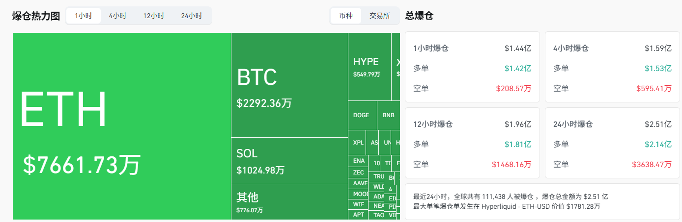 According to data from Coinglass, as reported by Odaily Planet Daily, $144 million in positions were liquidated across the network in the past hour, including $142 million in long positions and $2.0857 million in short positions. In addition, ETH liquidations amounted to $76.61 million and BTC liquidations amounted to $22.92 million.