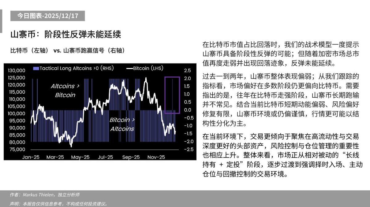 In the current environment, trading tends to focus on top-tier assets with high liquidity and better trading depth, and the importance of risk control and position management has increased accordingly. Overall, the market is gradually transitioning from a relatively passive "long-term holding + dollar-cost averaging" phase to a trading environment that emphasizes market timing, active position sizing, and drawdown control.