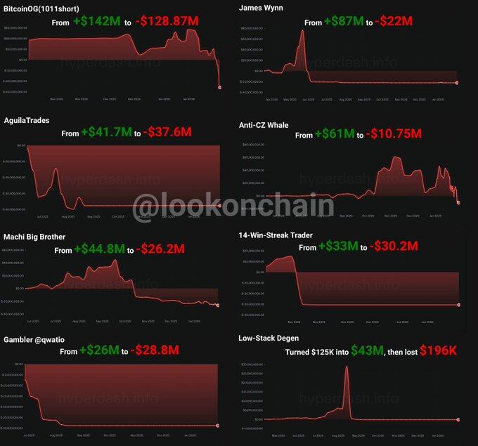 According to Lookonchain monitoring, eight traders including Brother Machi (Jeffrey Huang), "1011 Insider Whale", James Wynn, AguilaTrades, "CZ's Counterparty", "14-Win Streak Whale", Gambler@qwatio, and Low-Stack Degen all once earned substantial profits on Hyperliquid but ultimately lost everything, urging others to stay away from high leverage.