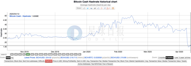 Data: Compared with the halving day, the average daily computing power of the BCH network has dropped by more than 50%