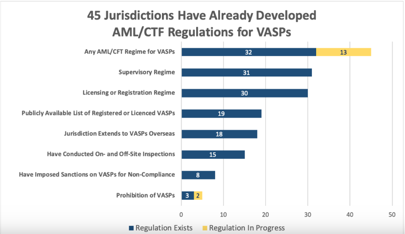 1. 32 jurisdictions report having implemented existing AML/CFT regulations for virtual asset service providers;