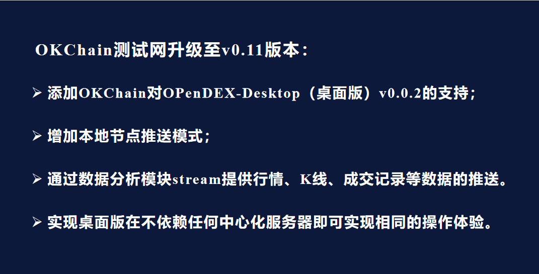 1. Testnet upgrade completed: On August 26, the OKChain testnet was upgraded to version v0.11.0. This upgrade includes: