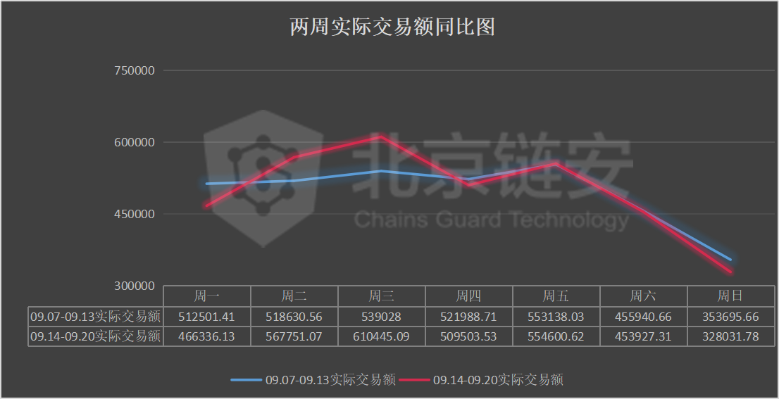 Judging from the data of the past week (09.14-09.20), the data on the chain showed a slight increase compared with the previous week. The actual transaction volume, which had been declining before, also rose slightly this week. Analyze data on the chain.