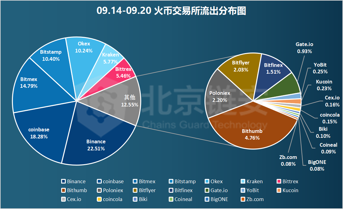 Note: The above ratio is calculated based on the distribution of the outflows of each exchange to the addresses of the identified subjects, excluding the addresses of unidentified subjects and independent addresses, that is, the actual proportion of the relevant subjects will be smaller in all the bitcoins outflowed by the exchanges Some.