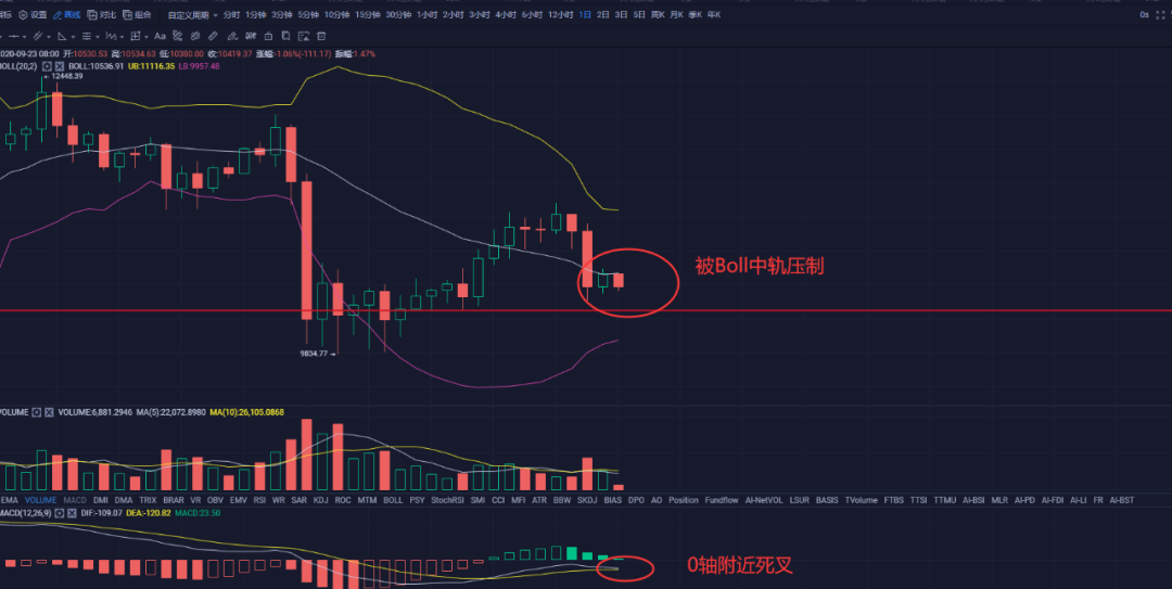 In addition, notice that the MACD has also formed a sign of a dead fork near the 0 axis, and the dead fork + returned to the bottom of the Boll middle rail, which does not seem to be a good sign.