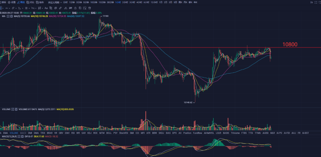 Since the upward impact of $10,800 failed and a certain degree of diving occurred, the next step is to pay attention to the support of $10,600. It is expected that the support of $10,600 will be tested next.