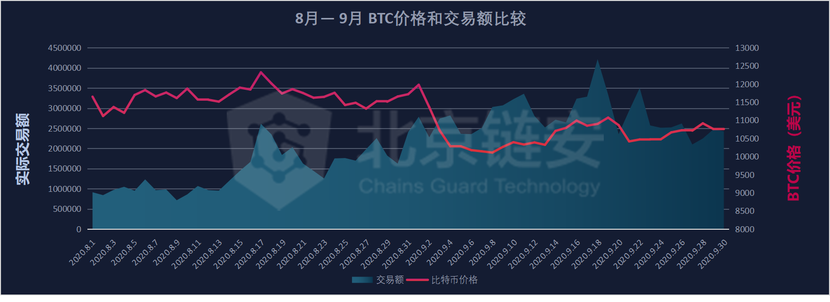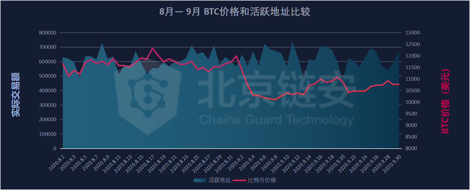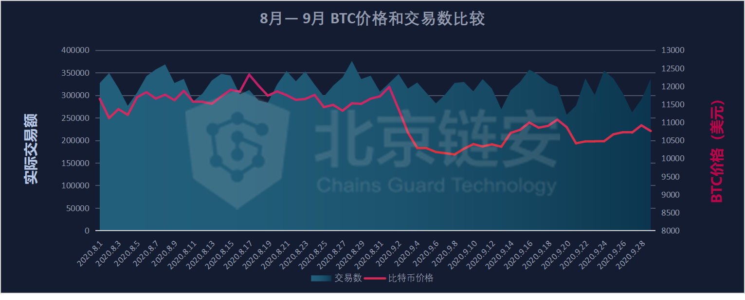 After breaking through 10,000 US dollars, the price of Bitcoin began to rise again in the shock after a brief adjustment in August. In early September, it once reached the 12,000 US dollar mark, but this moment did not last too long, and the price of Bitcoin quickly plunged Test the $10,000 mark. However, since then, although the price of Bitcoin is dangerous at the line of 10,000 US dollars, it has held on to this level, and has repeatedly reached 11,000 US dollars. Under this situation, there is no TEDA fluctuation in the data on the chain in September, and the actual transaction volume has also decreased compared with August. Next, let us review and analyze the data on the chain in September to see how the September Can the above data reveal some information.