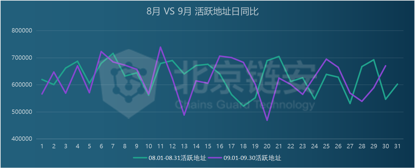 Looking at the number of active addresses, that is, the number of addresses that initiate transfers, the number of active addresses in September 2020 was 18,703,206, a decrease of 4.21% from 19,525,666 in August 2020.