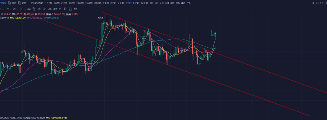 From the perspective of the 4-hour line, it basically rebounded continuously from the lower track of the operating range to the vicinity of the upper track of the range. At present, it is also natural to face the pressure of the upper track. In the short term, the continued upward rush is still a high probability event.