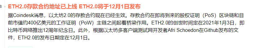 It is not too different from the November that was circulated on the market in the early stage, and it can be regarded as having definite news. In December, we can see the true face of ETH2.0.