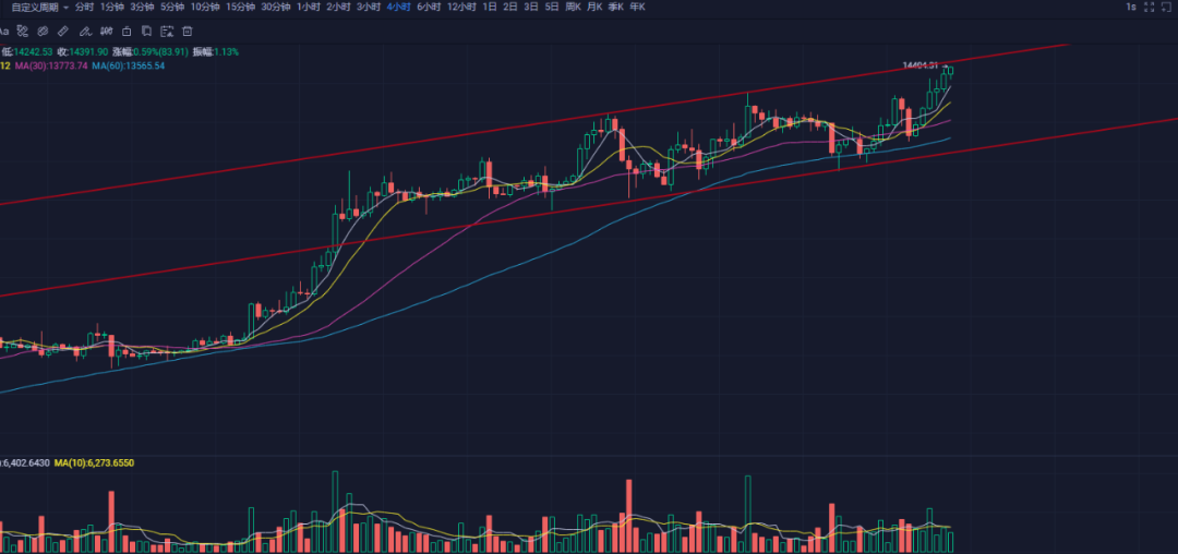 Back to the market, since 4:00 p.m. yesterday, the market has been rebounding. It has broken through 14,400 US dollars in the afternoon and is constantly refreshing new highs.
