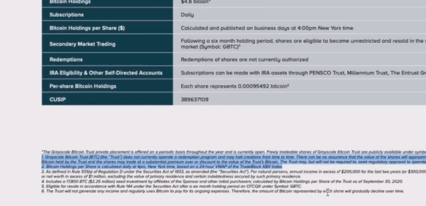 First of all, Grayscale Bitcoin Trust currently does not have any redemption plan, may stop creating from time to time, there is no guarantee that the value of the shares will be close to the value of the bitcoins held by the trust, and the shares may be higher or lower than the value of the trust. The trust may seek regulatory approval to implement a redemption plan in exchange for the value of the bitcoin held.