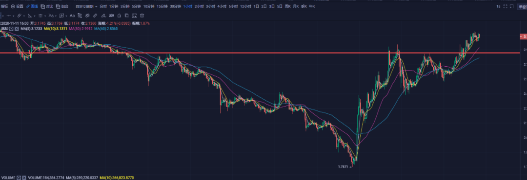 In the past two days, several leading coins have appeared in DeFi, and they are still familiar coins. Among them, Uni is more representative, and it has returned to above $3. The trend looks a little healthier, and the rise is accompanied by a correction.