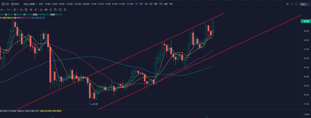 However, although LTC has risen as a whole, such an upward channel seems really uncomfortable. The volatility of the rise and pullback is too large. If it finally rises to $67 this time, the next pullback will pull back to $57, which will be a blow to the long-term Owner's confidence. Even if you are very optimistic about the long-term development of LTC, from the perspective of maximizing profits, it is still recommended to enter the market when it pulls back, and take profit first when it is near the upper track.