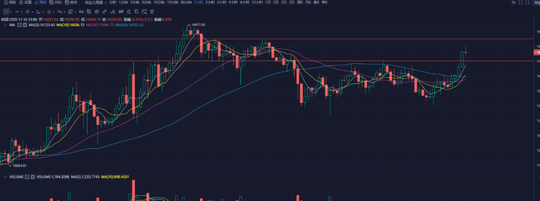 The overall market trend over the weekend was not unexpected. It basically maintained a volatile and callback trend for two days, and it was running around $16,000. But at the same time, we can also see the overall strength of BTC. No matter how much it falls back, it will also form a rebound trend on the same day , and left a long lower shadow line, and this week's market decline has been greatly reduced compared with last week, it seems that it is just a normal callback.