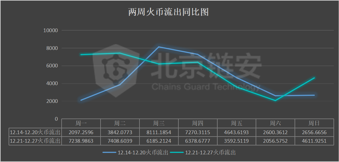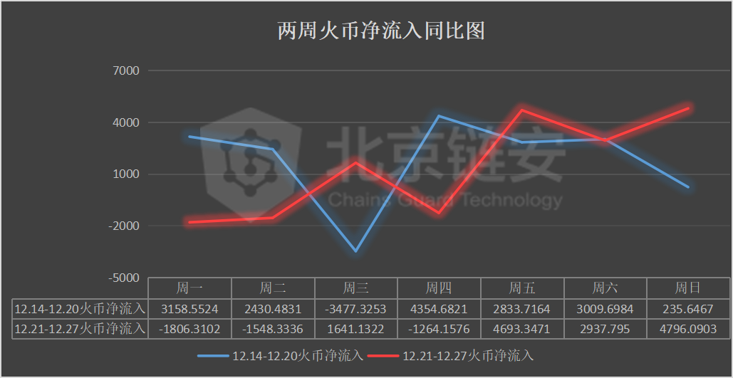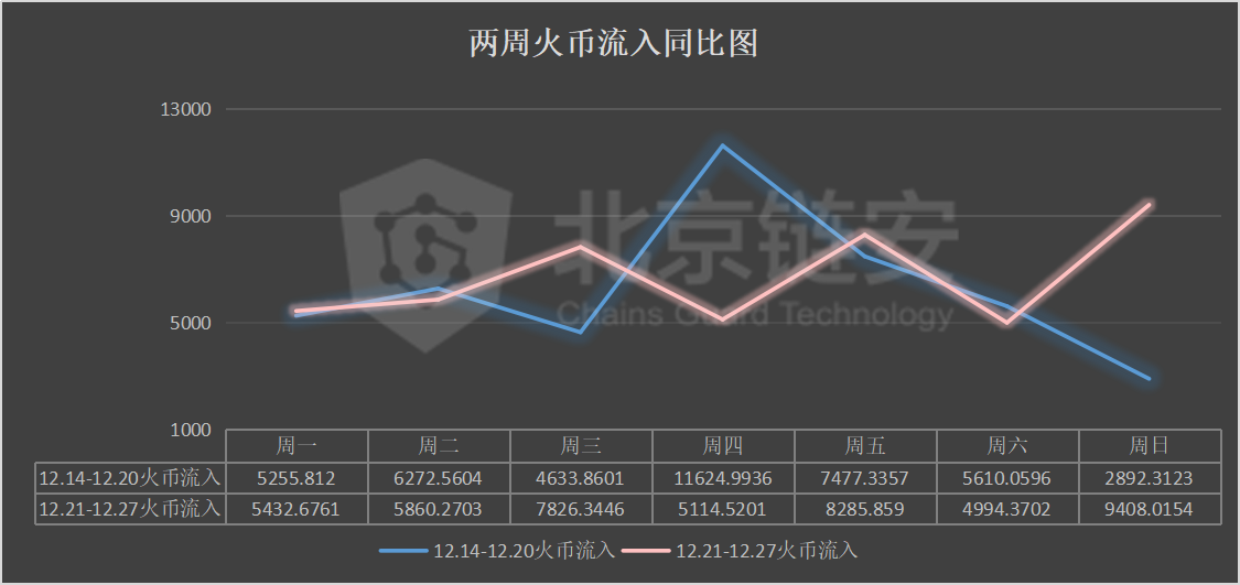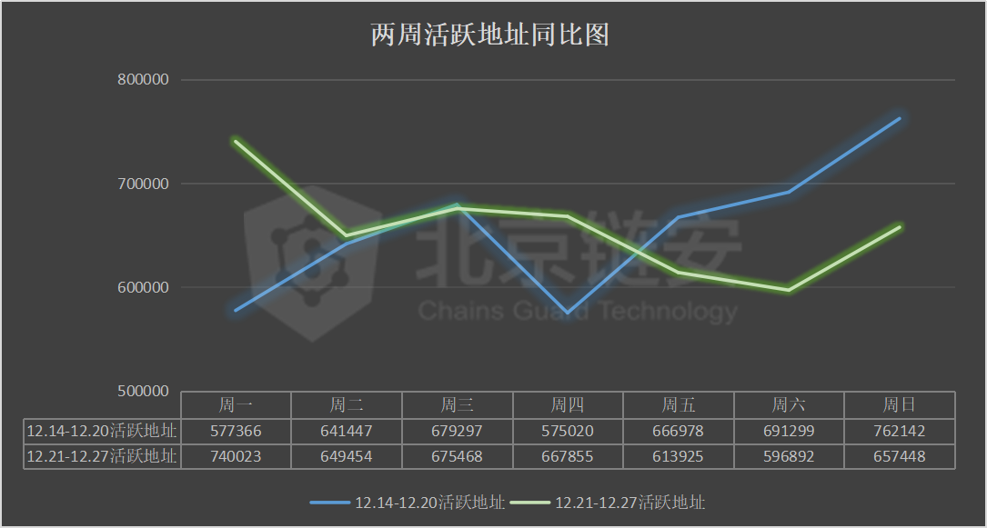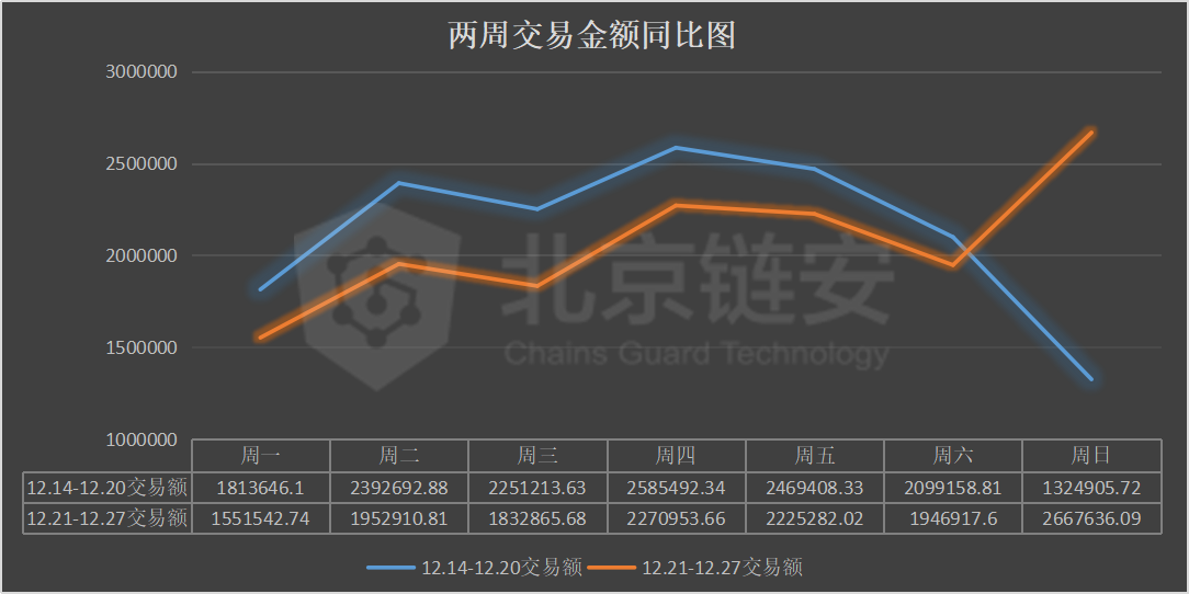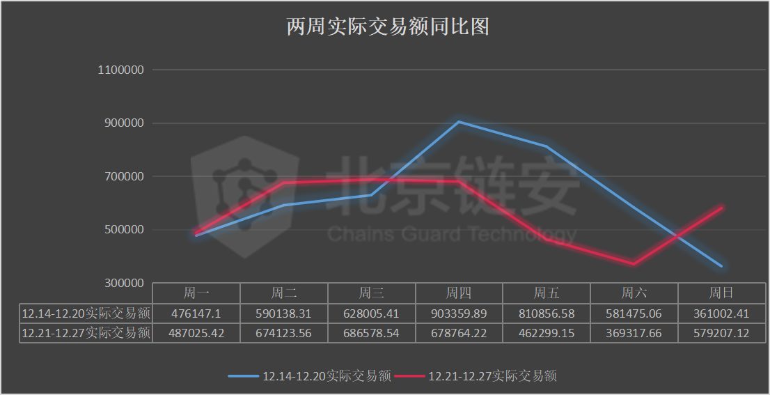 We can see that most of the time this week the on-chain transaction volume was lower than last week, but suddenly rose on Sunday, reflecting the stimulating effect of currency prices on on-chain transactions. You must know that usually Sundays are the weekly on-chain transactions The worst day for trading.