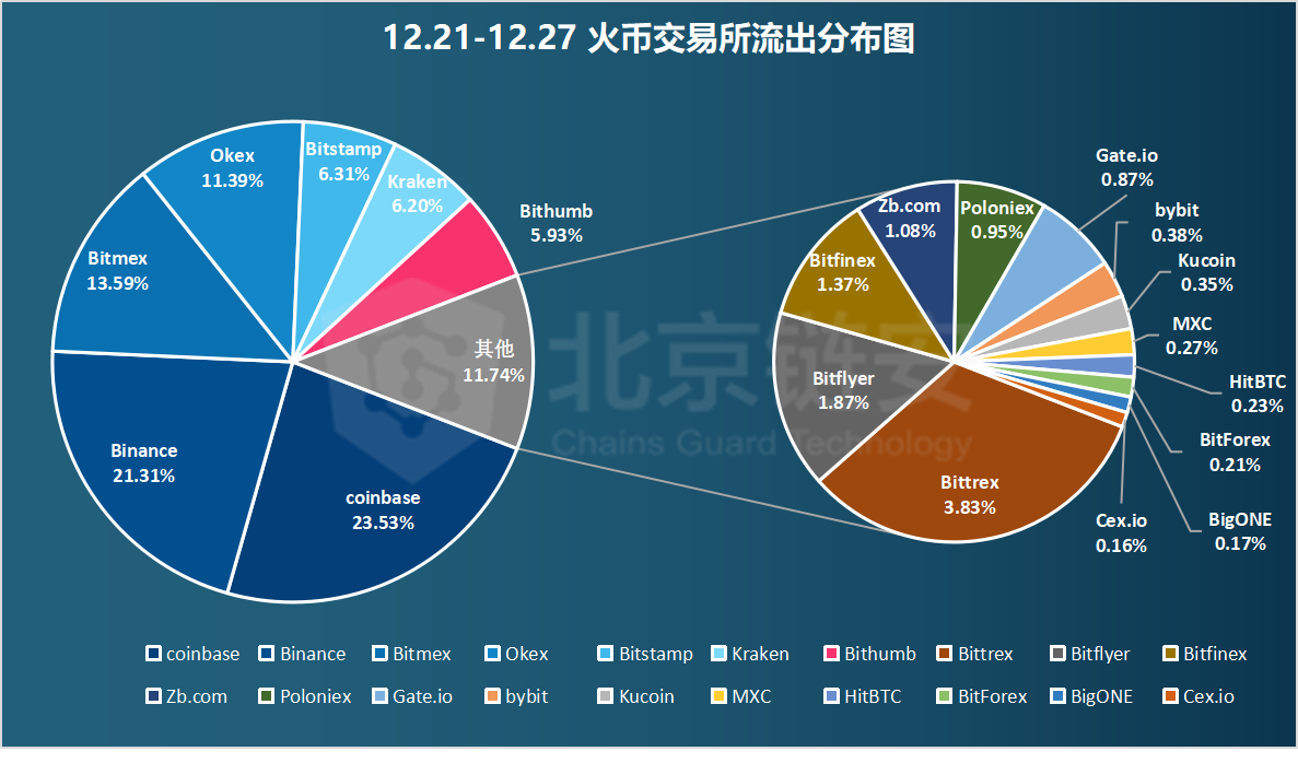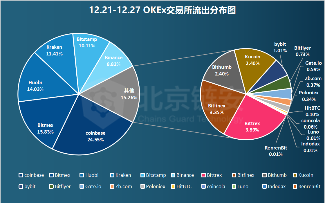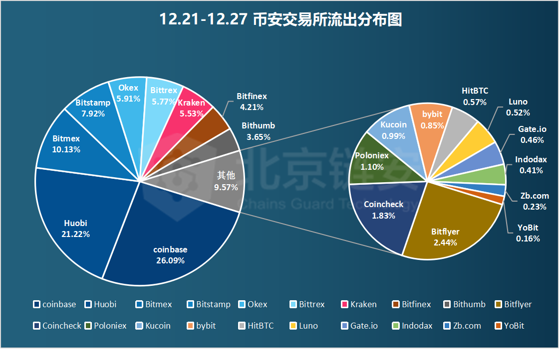 According to the outflow distribution chart, it can be seen that Coinbase has become the largest proportion of the three major outflow target exchanges, and Binance and Huobi are the second largest outflow target exchanges. The users of the two exchanges have recently shown a greater Coincidence and relatedness.