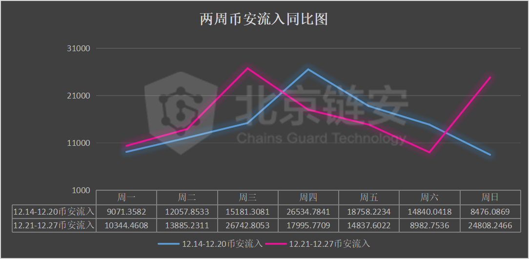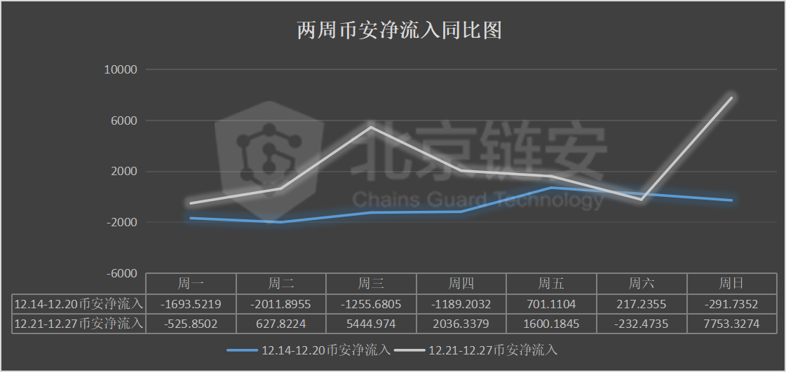 Judging from the data, the inflow and outflow of Bitcoin in Binance did not change much this week. It was also stimulated by the currency price on Sunday, which led to active transactions and a significant increase in deposits. At the same time, Bitcoin in Binance The outflow has decreased significantly, and the result is Binance’s net inflow of bitcoins. This week, it has turned from a negative number to a substantial net inflow of more than 16,000 bitcoins.