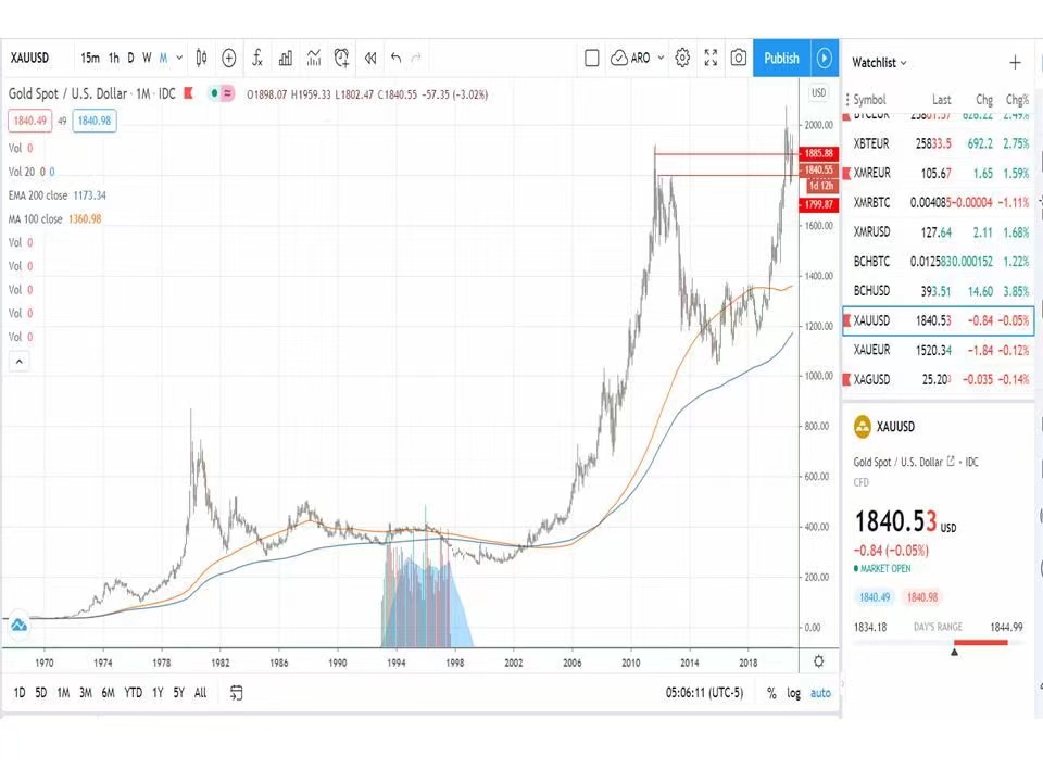 Today, this does not happen for the simple reason that there is no fixed relationship between fiat and real assets such as gold. But the effect of a massive devaluation is the same, it just fades in time and is not immediately apparent due to central bank interventions, manipulations and bailouts. Take a look at this chart of gold against the dollar and you can see the hyperinflationary loss of purchasing power since 1971 when gold hit $35 against the dollar. Today, you need $1,830 to buy an ounce of gold. This represents a 52-fold increase in 50 years.