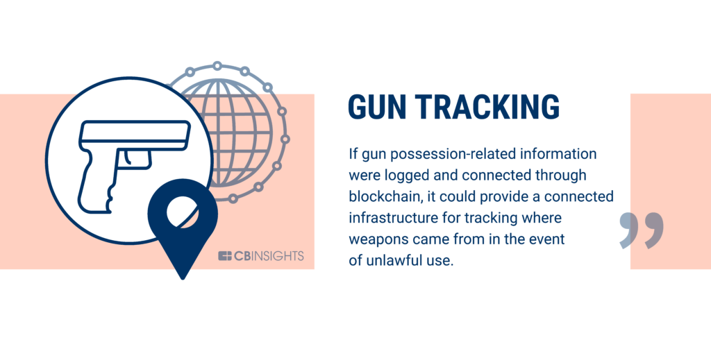 Blockchain's distributed ledger offers some opportunities for gun ownership and use. If information related to gun ownership is recorded and linked via blockchain, it could provide a networked infrastructure to trace the provenance of weapons when they are used illegally.