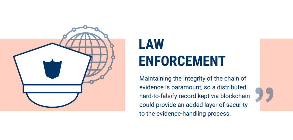Startups are bringing innovations that benefit law enforcement. Chronicled is developing a sealable, tamper-resistant blockchain registry system with a near-field communication chip, providing an ideal solution for evidence management in law enforcement.