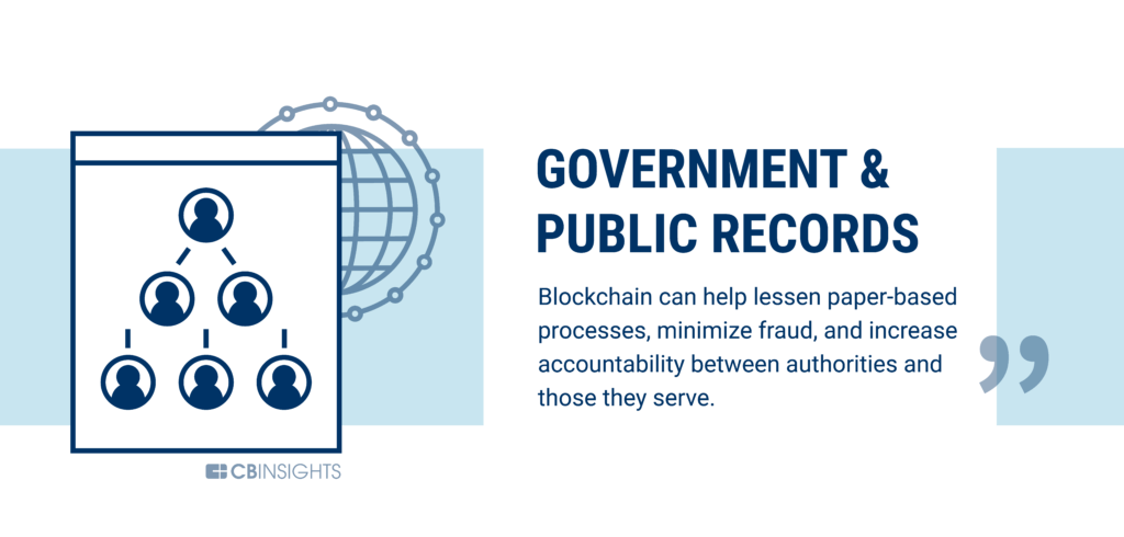 The management of public services is another area where blockchain could help reduce paperwork, reduce fraud, and increase accountability between authorities and the agencies they serve.