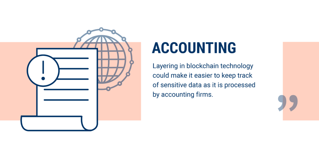 Accountants work with files that contain vast amounts of personal or organizational information, from tax bills and bank statements to spreadsheets. Layering in blockchain technology could allow accounting firms to keep track of this sensitive data as it is processed.