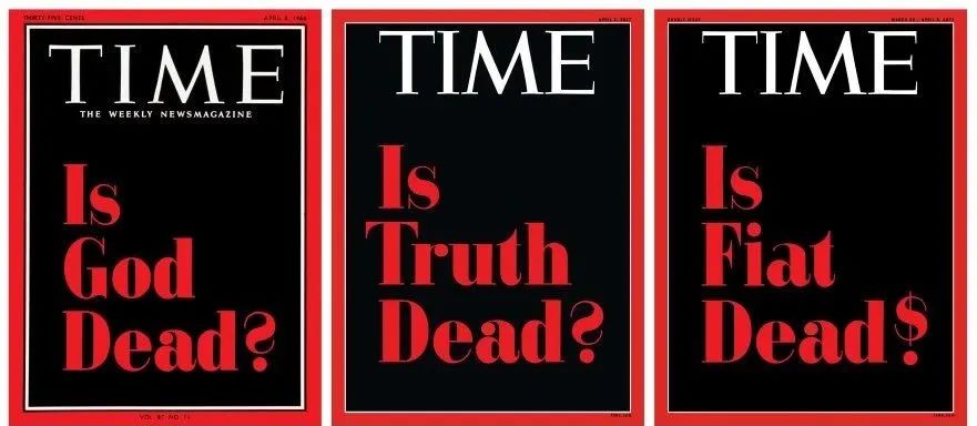 Time Magazine, Is God Dead? "," Is Truth Dead? ", "Is Fiat Dead"