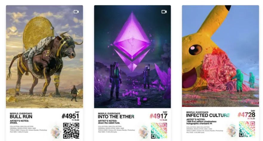 On March 11, 2021, the NFT work of American graphic designer Beeple was sold at Christie's auction house for US$69.3 million (about 450 million yuan)