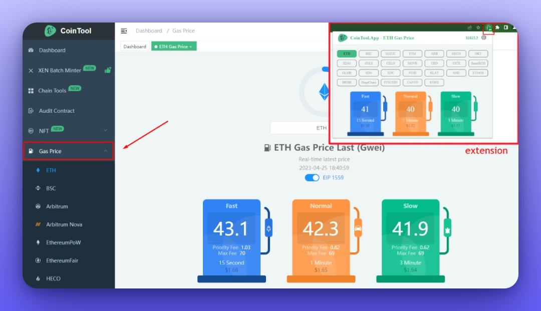 The CoinTool website provides a dashboard that allows users to track Gas in real time, and it supports browser plugins.