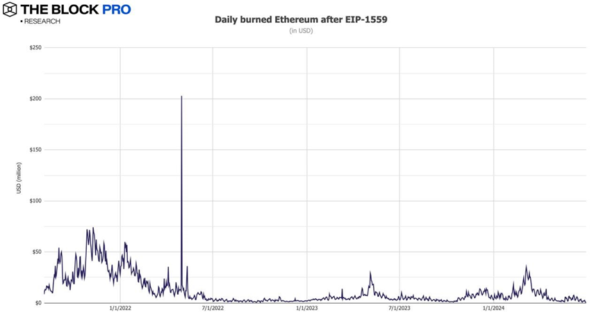 3. Bitcoin miner revenue fell to $961.9 million in June, a smaller drop of 0.1%. In addition, Ethereum staking revenue rose 8.1% to $289.2 million.