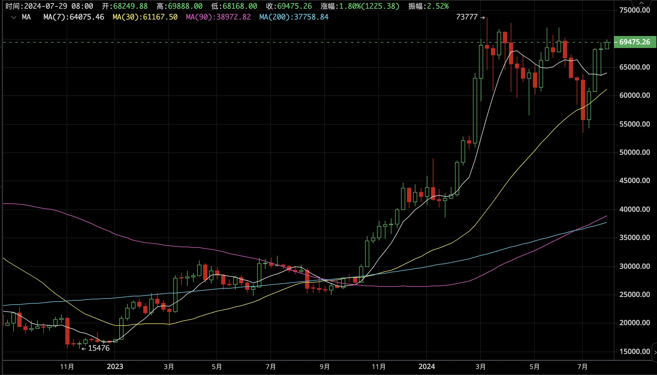 The direct driving force of the rise is still related to the continuous inflow of funds, but it has slowed down slightly compared with the previous two weeks. The biggest event of crypto assets this week was the attendance of Republican presidential candidate Trump at the US Bitcoin Conference on July 28. At this grand event attended by hundreds of thousands of people, Trump delivered a speech saying that after being elected, he would include BTC in the US national reserves, promote the power supply of BTC mining in the United States, and establish the first cryptocurrency presidential advisory committee in human history.