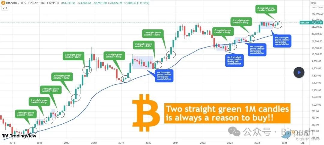 TradingShot highlights: “So far in the current bull run, we have gone through three such phases (including March 2024), where a rally occurs once the market closes two months in a row with a green monthly line. The 2019-2021 bull run had three such consecutive green monthly lines and a very clear accumulation phase, while the 2015-2018 bull run had countless times. As can be clearly seen from the multi-year chart above, when the market closes two months in a row with a green monthly line, it is always a very good buy signal.”